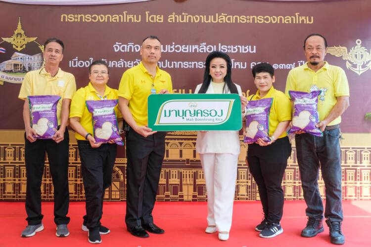 นางปรียานุช นันทโชติ ผู้อำนวยการอาวุโสฝ่ายการเงิน บริษัท พี อาร์ จี คอร์ปอเรชั่น จำกัด (มหาชน) (ที่ 4 จากซ้าย) ผู้บริหารกลุ่มธุรกิจในเครือข้าวมาบุญครอง ร่วมกับสำนักงานกิจการพลเรือน สำนักนโยบายและแผนกลาโหม กระทรวงกลาโหม ลงพื้นที่มอบข้าวมาบุญครอง กว่า 1.25 ตัน พร้อมถุงยังชีพ ช่วยเหลือประชาชนกลุ่มเปราะบาง ภายในชุมชนสุคันธาราม เขตดุสิต โดยได้รับเกียรติจาก พ.อ.ธีรศักดิ์ กฤษณะเศรณี รองผู้อำนวยการสำนักกิจการพลเรือน สำนักนโยบายและแผนกลาโหม กระทรวงกลาโหม (ที่ 3 จากซ้าย) เป็นผู้แทนในการรับมอบผลิตภัณฑ์ พร้อมเข้าเยี่ยมผู้สูงวัย และกลุ่มเปราะบาง ที่อยู่ภายในชุมชนฯ เพื่อมอบข้าวสาร และมอบกำลังใจในการดำเนินชีวิต ณ ชุมชนสุคันธาราม กรุงเทพฯ