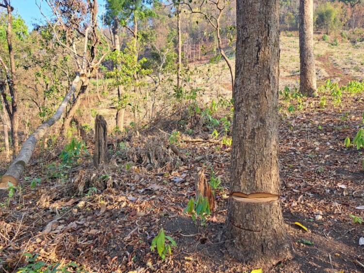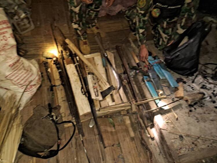 ต่อมา เวลา 06.00 น. คณะเจ้าหน้าที่ไปตรวจกระท่อมที่ 2 บริเวณจุดเกิดไฟป่า ระยะห่างประมาณ 100 เมตร เข้าไปตรวจสอบพบชาย 1 คน  ทราบชื่อว่านายจ่านู อยู่บ้านหนองขาว หมู่ 5 ต.สบป่อง อ.ปางมะผ้า จ.แม่ฮ่องสอน ตรวจสอบในกระท่อมพบอุปกรณ์ ประกอบด้วย 1.ปืนแก๊ป 1 กระบอก 2.ยาบ้า 8 เม็ด 3.เครื่องกระสุน 1 ชุด 4.มีด 6 เล่ม 5.ซากสัตว์ จำนวน 5 ชนิด ได้แก่ ขนเม่น,เกล็ดตัวนิ่ม,กระดูกกรามเก้ง,ตีนนกเหยี่ยว 2 ข้าง, ตีนไก่ป่า 1 คู่ คณะเจ้าหน้าที่จึงลงความเห็นว่า พื้นที่ทั้ง 2 แปลง ตรวจสอบแล้วมีการบุกรุกขยายพื้นที่ มีอาวุธปืน มียาบ้าอยู่ในครอบครอง มีการตัดไม้เพื่อขยายพื้นที่ และมีร่องรอยการเกิดไฟบริเวณพื้นที่เกิดเหตุของทั้ง 2 คน จึงลงความเห็นว่า ทั้ง 2 คน กระทำผิด ได้แก่