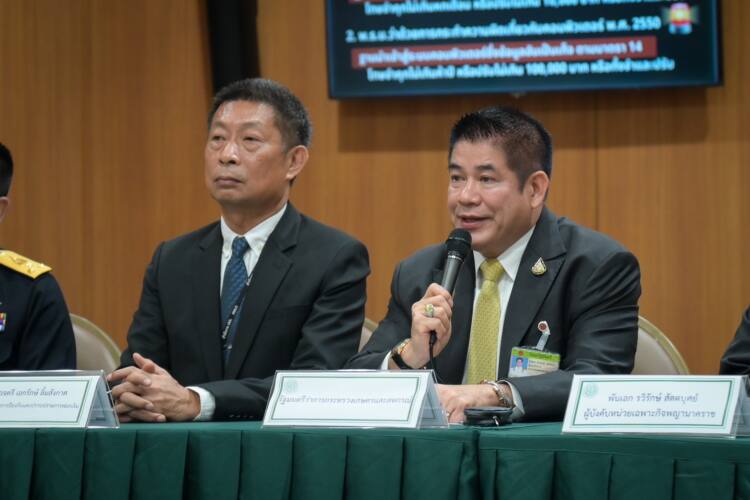 25มี.ค.67 / ร้อยเอกธรรมนัส พรหมเผ่า รัฐมนตรีว่าการกระทรวงเกษตรและสหกรณ์ แถลงความก้าวหน้าการดำเนินงานของหน่วยเฉพาะกิจพญานาคราช (ฉก.พญานาคราช) โดยมี พล.ต.ต. เอกรักษ์ ลิ้มสังกาศ รองเลขาธิการคณะกรรมการป้องกันและปราบปรามการฟอกเงิน พันเอก รวิรักษ์ สัตตบุศย์ ผู้บังคับหน่วยเฉพาะกิจพญานาคราช นายบัญชา สุขแก้ว อธิบดีกรมประมง นายสมชวน รัตนมังคลานนท์ อธิบดีกรมปศุสัตว์