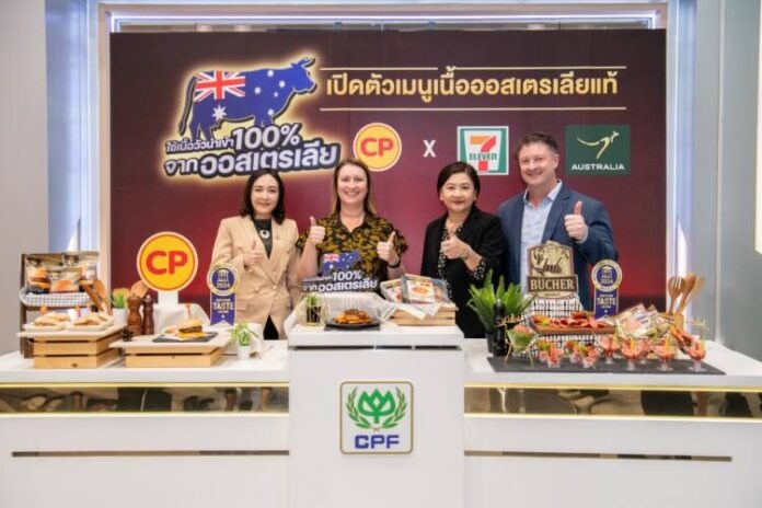 นางสาวอมีเลีย วอลช์ ทูตพาณิชย์และการลงทุนอาวุโสและอัครราชทูตที่ปรึกษา (การพาณิชย์) สำนักงานการพาณิชย์และการลงทุน (ออสเทรด) ร่วมเปิดตัวผลิตภัณฑ์จากเนื้อวัวออสเตรเลียใหม่ 4 เมนู ได้แก่ อาหารพร้อมรับประทาน แบรนด์ ซีพี ‘ชีสเบอร์เกอร์เนื้อและเพนเน่ซอสโบโลเนสเนื้อสับ’ รวมถึง ‘ไส้กรอกและโบโลน่าพริกไก่ผสมเนื้อวัวออสเตรเลีย’ แบรนด์ บุชเชอร์ (BUCHER) มาให้ผู้ที่ชื่นชอบการรับประทานเนื้อวัวได้ลิ้มลอง ด้วยราคาที่เข้าถึงได้ ในร้านสะดวกซื้อเซเว่น อีเลฟเว่น (7-Eleven) ทุกสาขาทั่วประเทศไทย