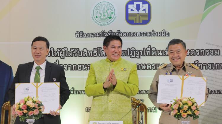 ในการนี้ ร้อยเอก ธรรมนัส พรหมเผ่า รมว.กษ. เผยว่า “รัฐบาลมีความตั้งใจและมุ่งมั่นที่จะเห็นเกษตรกรในเขตปฏิรูปที่ดิน มีที่ดินทำกิน สามารถพัฒนาอาชีพและรายได้ ลดความเหลื่อมล้ำทางสังคม และเข้าถึงแหล่งเงินทุนโดยการใช้ประโยชน์จากสินทรัพย์เพื่อพัฒนาอาชีพ รายได้ คุณภาพชีวิตของตนเองและครอบครัวในระยะยาว ซึ่ง ส.ป.ก. ได้ดำเนินการยกระดับ ส.ป.ก. 4-01 เป็นโฉนดเพื่อการเกษตร เพื่อเพิ่มมูลค่าและขยายสิทธิการใช้ประโยชน์ที่ดิน รวมตลอดถึงการใช้ค้ำประกันสินเชื่อกับสถาบันการเงินต่างๆ หรือการใช้โฉนดเพื่อการเกษตรเป็นหลักประกันตัวบุคคล โดย ส.ป.ก.จะยังคงแสวงหาความร่วมมือเพื่อขยายสิทธิประโยชน์ของโฉนดเพื่อการเกษตรเพื่อเสริมสร้างความผาสุกของพี่น้องเกษตรกรในเขตปฏิรูปที่ดินต่อไป”