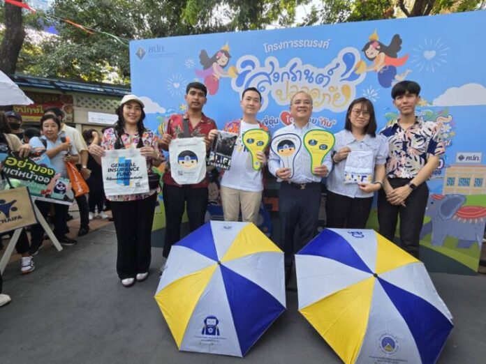 นายนพพล เบี้ยวไข่มุข ผู้จัดการกองทุนประกันชีวิต มอบหมายให้นายกรัณย์ทัศ รักษ์ธรรมกิจ พร้อมด้วยนางสาวสุภาภรณ์ เตชะไพศาลกุล เจ้าหน้าที่อาวุโส และตัวแทนพนักงานจากกองทุนประกันชีวิตเข้าร่วมจัดกิจกรรมออกบูธประชาสัมพันธ์สร้างความรู้ ความเข้าใจเกี่ยวกับภารกิจ บทบาทหน้าที่ของกองทุนประกันชีวิต และสิทธิประโยชน์ที่เกิดจากการเอาประกันภัยอย่างเงินกรมธรรม์ล่วงพ้นอายุความ ใน“โครงการรณรงค์ความปลอดภัย ทางถนนในช่วงเทศกาลสงกรานต์ประจำปี 2567” จัดโดยสำนักงาน คปภ. และภาคอุตสาหกรรมประกันภัย เมื่อวันที่ 4 เมษายน 2567 ณ อนุเสาวรีย์ชัยสมรภูมิ (เกาะพหลโยธิน) เพื่อสร้างความตระหนักรู้ให้ประชาชนเห็นถึงประโยชน์ของการทำประกันภัยซึ่งถือว่าเป็นเครื่องมือบริหารความเสี่ยงอีกรูปแบบหนึ่ง โดยภายในงานดังกล่าวนอกจากจะมีการออกบูธประชาสัมพันธ์แล้วยังมีกิจกรรมให้ประชาชนทั่วไปได้ร่วมสนุกเล่นเกมส์เพื่อลุ้นรับของที่ระลึกจากหน่วยงาน และบริษัทประกันชั้นนำที่เข้าร่วมออกบูธในครั้งนี้อีกด้วย
