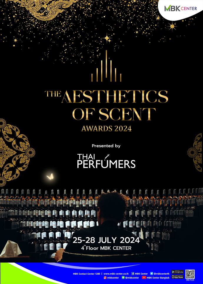ศูนย์การค้าเอ็ม บี เค เซ็นเตอร์ ร่วมสนับสนุนผู้ประกอบการน้ำ หอมแบรนด์ไทยสู่ตลาดสากล พร้อมชวนสัมผัสประสบการณ์แห่ งความหอมแบบเต็มอรรถรส ในงานประกวดน้ำหอมที่ยิ่งใหญ่ที่ สุดในประเทศไทย THE AESTHETICS OF SCENT AWARDS 2024 การประกาศรางวัลผู้ประกวดน้ำ หอมประจำปี 2024 และงาน Fair จัดโดย สมาคมสุคนธกรไทย เพื่อยกระดับอุตสาหกรรมศิ ลปะเครื่องหอมไทยให้เป็นที่รู้ จักในประเทศและต่างประเทศ กระตุ้นเศรษฐกิจ ระหว่างวันพฤหัสบดีที่ 25 – วันอาทิตย์ที่ 28 กรกฎาคม 2567 บริเวณชั้น 4 โซน D ตั้งแต่ 10.00 น. – 22.00 น.