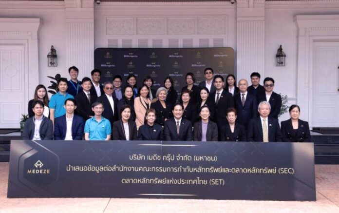ดร.วัชรี ถิ่นธานี ประธานกรรมการ นพ.วันชัย จันทราพิทักษ์ ประธานกรรมการตรวจสอบ นพ.วีรพล เขมะรังสรรค์ ประธานเจ้าหน้าที่บริหาร พร้อมด้วยคณะกรรมการบริษัทและคณะผู้บริหาร บริษัท เมดีซ กรุ๊ป จำกัด (มหาชน) หรือ MEDEZE ประกอบธุรกิจให้บริการตรวจวิเคราะห์ คัดแยก เพาะเลี้ยง และรับฝากเซลล์ต้นกำเนิด (Stem Cells) และตรวจศักยภาพเซลล์ภูมิคุ้มกัน (NK Cells)และนายพายุพัด มหาผล กรรมการผู้จัดการ ฝ่ายวาณิชธนกิจ บริษัทหลักทรัพย์ หยวนต้า (ประเทศไทย) จำกัด ในฐานะที่ปรึกษาทางการเงิน (FA) ให้การต้อนรับผู้บริหารและเจ้าหน้าที่จากสำนักงานคณะกรรมการกำกับหลักทรัพย์และตลาดหลักทรัพย์ (สำนักงาน ก.ล.ต.) และตลาดหลักทรัพย์แห่งประเทศไทย (ตลท.) ในโอกาสเข้าเยี่ยมชมกิจการ