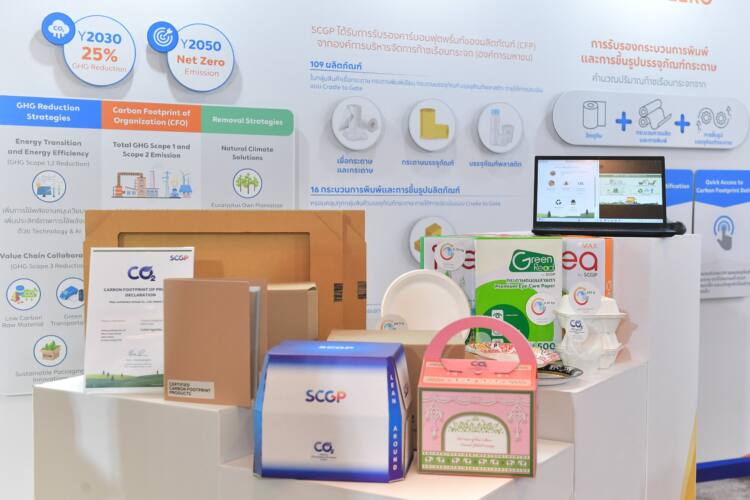 SCGP เสริมธุรกิจด้วยกลยุทธ์ ESG เพื่อขับเคลื่อนองค์กรเติบโตอย่างยั่งยืนให้พร้อมรับการเปลี่ยนแปลงที่สำคัญของโลก (Megatrends) ชูการรับรองคาร์บอนฟุตพรินท์ของผลิตภัณฑ์ (CFP) การพัฒนา Private declaration Label เพื่อระบุปริมาณ CFP บนผลิตภัณฑ์ พร้อม “ซอฟต์แวร์คาร์บอนฟุตพริ้นท์” ช่วยคำนวณปริมาณปล่อยคาร์บอนไดออกไซด์ได้อย่างรวดเร็ว เสริมศักยภาพการดำเนินธุรกิจ ช่วยจัดการปล่อยก๊าซเรือนกระจกใน Scope 3 ของลูกค้า เพิ่มโอกาสธุรกิจและเสริมศักยภาพอุตสาหกรรมบรรจุภัณฑ์ไทย ตั้งเป้าขอการรับรอง CFP ในกลุ่มสินค้าที่ผลิตในประเทศไทย 100% ภายในปี 2027