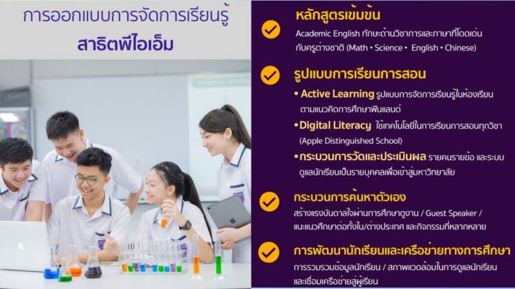 โรงเรียนสาธิตสถาบันการจัดการปัญญาภิวัฒน์ (สาธิตพีไอเอ็ม) โรงเรียนระดับชั้นมัธยมศึกษาปีที่ 1-6 โรงเรียนไทยที่มีรูปแบบการเรียนการสอนสไตล์ฟินแลนด์ มีการเตรียมความพร้อมรองรับการเรียนรู้ในโลกแห่งอนาคตให้ผู้เรียนสามารถเรียนได้ทุกที่ ทุกเวลา (Anytime Anywhere) ด้วยการนำสื่อและเทคโนโลยีมาใช้ โดยให้ผู้เรียนใช้ iPad เป็นเครื่องมือสำคัญในการเรียนรู้เนื้อหาควบคู่กับการลงมือปฏิบัติจริง (Active Learning) ซึ่งช่วยให้ผู้เรียนเกิดการเรียนรู้ได้รวดเร็วยิ่งขึ้น โดยการออกแบบการจัดการเรียนรู้อย่างโดดเด่นใน 4 มิติ