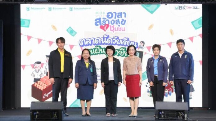ศูนย์การค้าเอ็ม บี เค เซ็นเตอร์ นำโดย นางสาวพุทธชาด ศรีนิศากร (ที่ 3 จากซ้าย) ประธานเจ้าหน้าที่บริหารสายการตลาด บริษัท เอ็ม บี เค จำกัด (มหาชน) ร่วมพิธีเปิดงาน ตลาดนัดวัยเรียน สานฝันสู่อาชีพ ปีที่ 3 เปิดประสบการณ์การเรียนรู้นอกห้องเรียน สร้างอาชีพผู้ประกอบการรุ่นเยาว์ และให้การต้อนรับ นางสาวกาญจนา ภูพิพัฒน์ผล (ที่ 4 จากซ้าย) รองผู้อำนวยการสำนักพัฒนาสังคม กรุงเทพมหานคร ประธานในพิธีเปิด พร้อมด้วย นางสาว สุขวิชญาณ์ นสมทรง (ที่ 2 จากซ้าย) ผู้อำนวยการเขตปทุมวัน นายปริญญา จันทร์บัว (ที่ 6 จากซ้าย) ผู้ช่วยผู้อำนวยการเขตสัมพันธวงศ์ ให้เกียรติร่วมงาน ณ ลานกิจกรรมเอ็ม บี เค อเวนิว โซน A ศูนย์การค้าเอ็ม บี เค เซ็นเตอร์ เมื่อเร็ว ๆ นี้