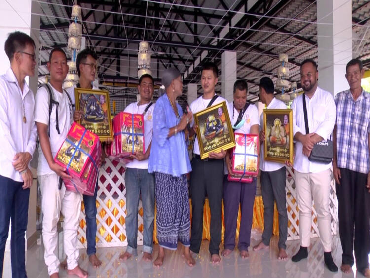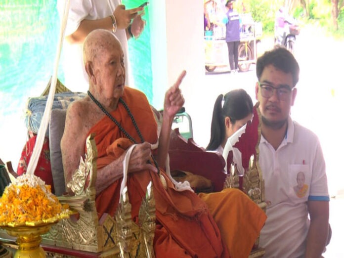 เมื่อวันที่ 24 สิงหาคม 2567 ที่วัดป่าสุทธาวาส ต.ค้อน้อย อ.โพนสวรรค์ จ.นครพนม เทพเจ้าลุ่มน้ำโขง หลวงปู่คีบ ธีรปัญโญ เกจิดัง อายุ 109 ปี ทำพิธีปลุกเสกวัตถุมงคล เพื่อสมทบทุนสร้างหอฉันภายในวัด โดยมีพระเกจิชื่อดังหลายรูปร่วมในพิธีและร่วมเจริญพระพุทธมนต์ มีพุทธศาสนิกชนเข้าร่วมจำนวนมาก โดยการปลุกเสกวัตถุมงคลครั้งนี้ หลวงปู่คีบ ธีรปัญโญ ได้นั่งเป็นประธาน จากนั้นเริ่มจุดเทียนชัย และอธิษฐานจิต โดยเพ่งกระแสจิตไปที่วัตถุมงคล พร้อมยกนิ้วมือด้านซ้ายขึ้นมา เขียนเป็นอักขระในอากาศเป็นเวลานานกว่า 30 นาที เสร็จพิธีแล้วพระสงฆ์ได้เจริญน้ำพระพุทธมนต์เพื่อความเป็นสิริมงคล จากนั้นได้แจกจ่ายเหรียญวัตถุมงคล ให้กับผู้เข้าร่วมพิธีที่มาหลายร้อยคน มีคอหวยหลายรายส่องกระถางน้ำมนต์ซึ่งแล้วแต่ใครจะตีไปทางใด แต่หลวงปู่คีบไม่ให้เล่นหวย คนก็ยังเอาอายุ 109 ไปตีเป็นเลขหวยงวดวันที่ 1 ก.ย.นี่