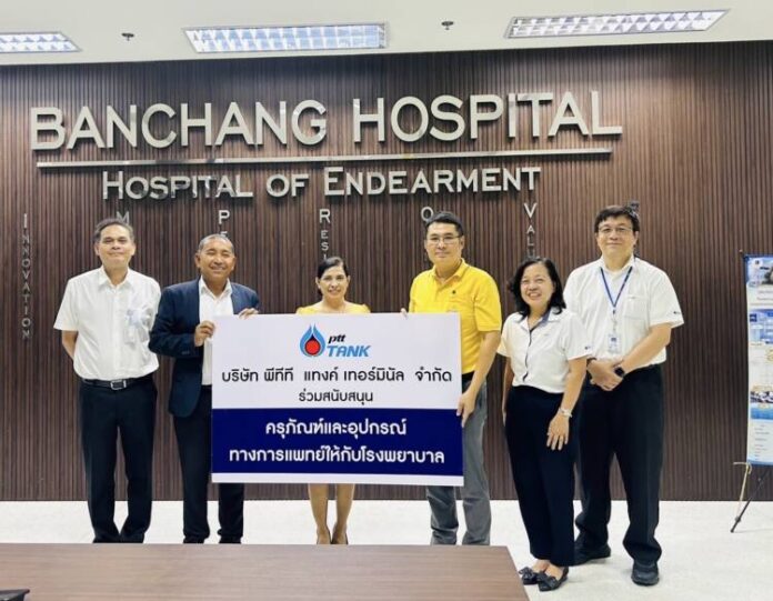 ในวันเดียวกัน กรรมการผู้จัดการใหญ่ บริษัท พีทีที แทงค์ฯ พร้อมด้วยผู้บริหาร ได้มอบเงินบริจาคเพื่อสมทบทุนจัดซื้อวัสดุ/อุปกรณ์ทางการแพทย์ ให้กับโรงพยาบาลระยอง จำนวน 30,000 บาท โดยมีนางสาวกรรณิการ์ สุขประเสริฐ รองผู้อำนวยการฝ่ายบริหาร โรงพยาบาลระยอง เป็นผู้รับมอบ ณ โรงพยาบาลระยอง