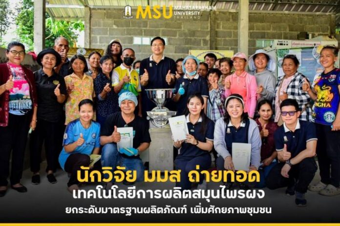 คลินิกเทคโนโลยี มหาวิทยาลัยมหาสารคาม (มมส) ภายใต้การส่งเสริมการนำวิทยาศาสตร์ เทคโนโลยีและนวัตกรรม (วทน.) เพื่อเพิ่มศักยภาพการผลิตและเศรษฐกิจชุมชน กระทรวงอุดมศึกษา วิทยาศาสตร์ วิจัยและนวัตกรรม เล็งเห็นถึงความสำคัญของพืชสมุนไพรไทย จึงได้สนับสนุนงบประมาณการส่งเสริมการนำวิทยาศาสตร์ เทคโนโลยีและนวัตกรรมเพื่อเพิ่มศักยภาพการผลิตและเศรษฐกิจชุมชน ให้กับคณะทำงานทีมวิจัย นำโดย ผู้ช่วยศาสตราจารย์ ดร.ชฎาพร เสนาคุณ พร้อมด้วย ผู้ช่วยศาสตราจารย์ ดร.สมบัติ อัปมระกา จากสถาบันวิจัยวลัยรุกขเวช ,รองศาสตราจารย์ ดร.จักรมาส เลาหวณิช คณะวิศวกรรมศาสตร์ และ รองศาสตราจารย์ ดร.สมศักดิ์ นวลแก้ว คณะเภสัชศาสตร์ ในโครงการการพัฒนากระบวนการผลิตสมุนไพรผงให้มีสารออกฤทธิ์ทางชีวภาพสูง เพื่อยกระดับมาตรฐานผลิตภัณฑ์สมุนไพรไทย ของวิสาหกิจชุมชนกลุ่มสมุนไพรแปลงใหญ่ชาวนาข่า อำเภอวาปีปทุม จังหวัดมหาสารคาม