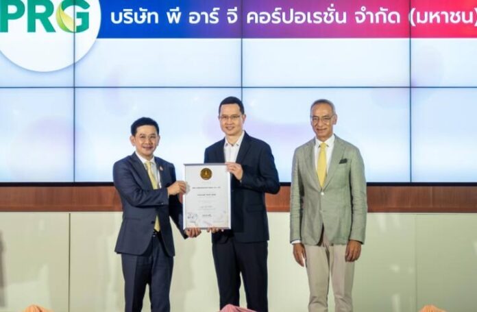นายบูลพัฒน์ วิศรุตวงศ์ รองกรรมการผู้จัดการใหญ่ บริษัท พี อาร์ จี คอร์ปอเรชั่น จำกัด (มหาชน) (ที่ 2 จากซ้าย) ผู้บริหารกลุ่มธุรกิจในเครือเอ็ม บี เค รับใบประกาศนียบัตร ตราสัญลักษณ์ Thailand Trust Mark (T Mark) ในโอกาสที่ข้าวมาบุญครอง ได้รับตราสัญลักษณ์แห่งความเชื่อมั่นในคุณภาพสินค้าและบริการ ที่ตอกย้ำความไว้วางใจจากทั่วโลก โดยกรมส่งเสริมการค้าระหว่างประเทศ กระทรวงพาณิชย์ ภายในงานได้รับเกียรติจาก นายวุฒิไกร ลีวีระพันธุ์ ปลัดกระทรวงพาณิชย์ (ที่ 1 จากซ้าย) และ นายภูสิต รัตนกุล เสรีเริงฤทธิ์ อธิบดีกรมส่งเสริมการค้าระหว่างประเทศ (ที่ 3 จากซ้าย) เป็นผู้มอบใบประกาศนียบัตร ณ ห้องมโนปกรณ์นิติธาดา กระทรวงพาณิชย์