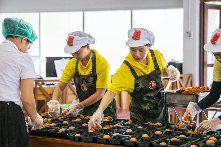 “ด้วยข้อจำกัดของการจัดหาวัตถุดิบปรุงอาหารที่ค่อนข้างขาดแคลนในช่วงที่ผ่านมา ประกอบกับกระบวนการส่งมอบอาหารถึงมือผู้ประสบภัย ที่ทำได้ล่าช้า เนื่องจากไม่สามารถเข้าถึงบางพื้นที่ จึงได้รับการสนุบสนุนจากกองทัพบก รวมถึงเครือซีพีและซีพีเอฟ ในการปฏิบัติภารกิจครั้งนี้ นับตั้งแต่การนำวัตถุดิบมามอบให้มหาวิทยาลัย เพื่อเสริมกำลังผลิตของโรงครัวปรุงเป็นอาหารสุก และส่งต่อให้กำลังพลไปแจกจ่ายแก่ผู้ประสบภัย ร่วมกับจิตอาสาซีพีและซีพีเอฟ ตลอดจนนักศึกษาจิตอาสาของมหาวิทยาลัยฯ นับว่าเป็นความร่วมแรงร่วมใจของ 3 ภาคส่วน ในการกระจายความช่วยเหลือไปสู่ผู้ประสบภัยอย่างแท้จริง” ผศ.ดร.ณัฐพรพรรณ กล่าว