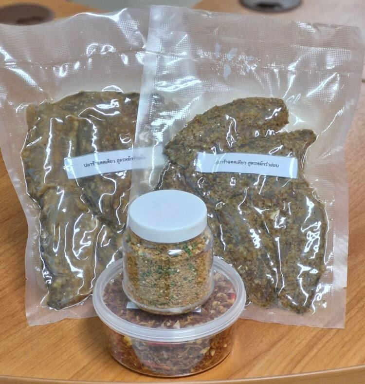 สำหรับผลิตภัณฑ์ที่คัดเลือกมาในครั้งนี้มี 3 รายการ ทั้งผลิตภัณฑ์และวัตถุดิบ คือ น้ำปลาร้าปรุงสุก ปลาฟู และผงโรยข้าวปรุงรสจากปลาฟู โดยน้ำปลาร้าปรุงสุก สามารถนำไปประยุกต์ใช้กับเมนูอาหารตามความนิยม ส่วนเนื้อปลาฟู สามารถนำไปต่อยอดเป็นกลุ่มน้ำพริกชนิดต่างๆ ได้ดี รวมถึงผงโรยข้าวแบบญี่ปุ่นปรุงรสตามชอบ ซึ่งสามารถนำไปทำเป็นเมนูอาหารในครัวเรือนและพัฒนาเพิ่มมูลค่าสร้างรายได้ตามความต้องการ
