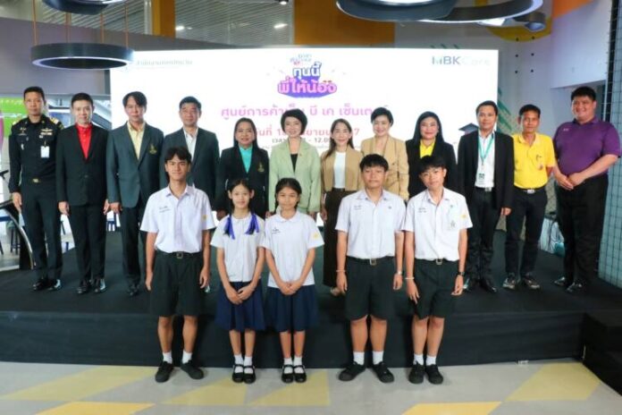 ศูนย์การค้าเอ็ม บี เค เซ็นเตอร์ สานต่อโครงการ อาสาสร้างสุขสู่ชุมชน ทุนนี้พี่ให้น้อง ปีที่ 3 ภายใต้แนวคิด MBK CARE ร่วมกับ สำนักงานเขตปทุมวั น จัดพิธีมอบทุนการศึกษาให้กั บนักเรียนจากโรงเรียนสังกัดกรุ งเทพมหานคร สำนักงานเขตปทุมวัน โดยได้รั บเกียรติจาก นางสาวพุทธชาด ศรีนิศากร (แถวบน : ที่ 6 จากซ้าย) ประธานเจ้าหน้าที่บริ หารสายการตลาด บริษัท เอ็ม บี เค จำกัด (มหาชน) เป็นประธานเปิดงานและมอบทุ นการศึกษาให้กับนักเรียน พร้อมด้วย นางสาวสหัพย์ภัค โชควิจิตรกุล (แถวบน : ที่ 7 จากซ้าย) กรรมการผู้จัดการศูนย์การค้าเอ็ ม บี เค เซ็นเตอร์ และ นางสาวศตกมล วรกุล (แถวบน : ที่ 8 จากซ้าย) ผู้อำนวยการอาวุโสฝ่ายสื่ อสารองค์กร ร่วมมอบทุน พร้อมได้รับเกียรติจาก นางสาวสุขวิชญาณ์ นสมทรง (แถวบน : ที่ 5 จากซ้าย) ผู้อำนวยการเขตปทุมวัน คณะผู้บริหารเขตปทุมวัน คณะผู้บริหารสถานศึกษาสังกัดกรุ งเทพมหานคร สำนักงานเขตปทุมวัน ร่วมงาน ณ ศูนย์การค้าเอ็ม บี เค เซ็นเตอร์ เมื่อเร็ว ๆ นี้