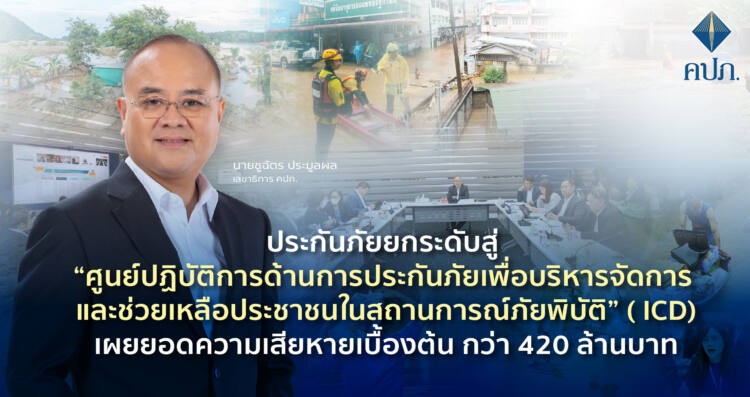 จากเหตุการณ์อุทกภัยในพื้นที่ ภาคเหนือ และภาคตะวันออกเฉียงเหนือ ส่งผลให้ประชาชนได้รับความสู ญเสียต่อชีวิตและทรัพย์สินเป็ นจำนวนมาก สำนักงานคณะกรรมการกำกับและส่ งเสริมการประกอบธุรกิจประกันภัย (สำนักงาน คปภ.) และภาคธุรกิจประกันภัยได้เร่ งตรวจสอบและประเมินความเสียหาย พบว่ามูลค่าความเสียหายที่ ทำประกันภัยรวมกว่า 420 ล้านบาท เป็นรถยนต์ที่เสี ยหายประมาณการค่าสินไหมทดแทน 408 ล้านบาท บ้านที่อยู่อาศัย อาคาร ร้านค้า เสียหาย 865 หลังคาเรือน ประมาณการค่าสินไหมทดแทนไม่ต่ำ กว่า 10 ล้านบาท และข้าวนาปีที่ทำประกันภัย เสียหาย 126,104 ไร่ ซึ่งอยู่ระหว่างการประเมินค่าสิ นไหมทดแทน