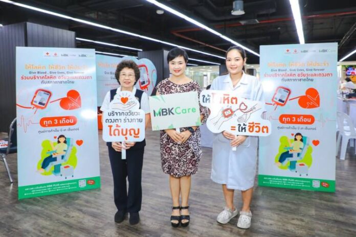นางสาวศตกมล วรกุล (คนกลาง) ผู้อำนวยการอาวุโสฝ่ายสื่อสารองค์กร บริษัท อินเทลลิเจ้นท์ ครีเอทีฟ แอนด์ มาร์เก็ตติ้ง จำกัด เป็นตัวแทนผู้บริหารศูนย์การค้าเอ็ม บี เค เซ็นเตอร์ ให้การต้อนรับคณะแพทย์ พยาบาล และเจ้าหน้าที่จากศูนย์บริการโลหิตแห่งชาติและศูนย์รับบริจาคอวัยวะ สภากาชาดไทย ในกิจกรรม บริจาคโลหิต อวัยวะและดวงตา หนึ่งคนให้ หลายคนรับ ครั้งที่ 15 ประจำปี 2567 เชิญชวนพนักงาน ลูกค้า ผู้ประกอบการร้านค้า ร่วมบริจาคโลหิต โดยครั้งนี้มีจำนวนผู้ลงทะเบียนบริจาคทั้งสิ้น 171 ราย จำนวนโลหิตที่ได้รับ 144 ยูนิต ผู้บริจาคดวงตา อวัยวะและร่างกาย จำนวน 58 ราย ณ ลานกิจกรรมชั้น 4 โซน D ศูนย์การค้าเอ็ม บี เค เซ็นเตอร์ เมื่อเร็ว ๆ นี้