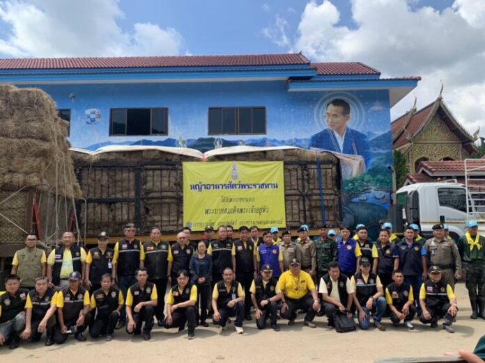 นายสัตวแพทย์สมชวน รัตนมังคลานนท์ อธิบดีกรมปศุสัตว์เปิดเผยว่า เมื่อวันที่ 7 ตุลาคม 2567 มอบหมายนายสัตวแพทย์ประภาส ภิญโญชีพ รองอธิบดีกรมปศุสัตว์ และนายพงษ์พันธ์ ธรรมมา รองอธิบดีกรมปศุสัตว์ นำเจ้าหน้าที่ของกรมปศุสัตว์เดินทางไปส่ง “หญ้าอาหารสัตว์พระราชทาน” เพื่อช่วยเหลือปางช้างที่ประสบอุทกภัยในอำเภอแม่แตง จังหวัดเชียงใหม่ สำหรับหญ้าที่นำส่งไปช่วยเหลือปางช้างในอำเภอแม่แตง สามารถให้กินได้ทั้งช้าง วัว ควาย แพะ และแกะ โดยนำไปทั้งหญ้าสดและหญ้าแห้ง แบ่งเป็นหญ้าสด 3,000 กิโลกรัม หญ้าแห้ง 32,000 กิโลกรัม รวมทั้งสิ้น 35,000 กิโลกรัมหรือ 35 ตัน ในการส่งมอบ “หญ้าอาหารสัตว์พระราชทาน” เพื่อช่วยเหลือปางช้างในอำเภอแม่แตงครั้งนี้ กรมปศุสัตว์ร่วมกับนายชัยณรงค์ นันตาสาย นายอำเภอแม่แตง พันโทวัชระ ถึกสุวรรณ์ ผบ. ร.7 พัน.2 นำส่งไปเก็บไว้ที่โครงการอนุรักษ์พันธุกรรมพืช อันเนื่องมาจากพระราชดำริสมเด็จพระเทพรัตนราชสุดาสยามบรมราชชนนี ศูนย์อนุรักษ์และพัฒนาท้องถิ่น ตำบลกึ๊ดช้าง ซึ่งใช้เป็นสถานที่จัดเก็บรักษาเสบียงอาหารสัตว์ เพื่อนำไปกระจายช่วยเหลือปางช้างต่างๆ ที่ได้รับผลกระทบในพื้นที่ต่อไป