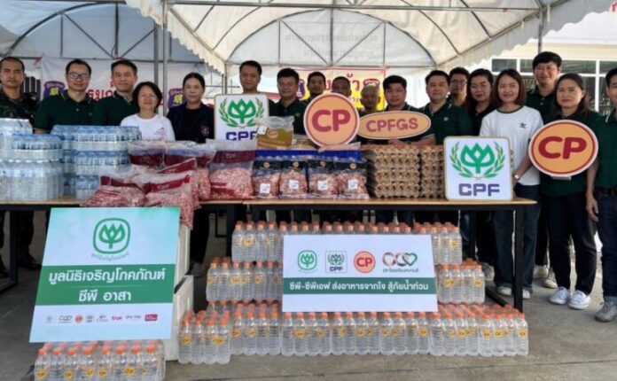 บริษัท เจริญโภคภัณฑ์อาหาร จำกัด (มหาชน) หรือซีพีเอฟ ยังคงเดินหน้าช่วยเหลือประชาชนฝ่าวิกฤติน้ำท่วมในภาคเหนือและตะวันออกเฉียงเหนืออย่างต่อเนื่อง ด้วยการนำอาหารสดและของใช้จำเป็นมอบผ่านหน่วยงานภาครัฐ โรงครัว รวมถึงมูลนิธิต่างๆ เพื่อบรรเทาทุกข์และเติมเต็มกำลังใจให้ประชาชนที่ประสบภัย เข้าถึงอาหารอย่างเพียงพอ รวมทั้งส่งเยียวยาพนักงานที่เดือดร้อนจากภัยน้ำท่วม