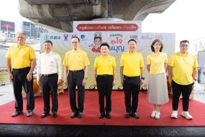 เอ็ม บี เค เซ็นเตอร์ ร่วมสืบสานประเพณีถือศีลกินเจ โดยนำอาหารเจปรุงสุกใหม่จากร้านอาหารชั้นนำใน ศูนย์อาหารฟู้ดเลเจ้นด์ส บาย เอ็มบีเค และ โรงแรมปทุมวัน ปริ๊นเซส ธุรกิจในเครือเอ็ม เอ็ม บี เค มาออกบูธในงาน “หนูด่วนชวนกินเจ ปีที่ 16 เฉลิมพระเกียรติฯ ภายใต้ธีม “Healthy สุขใจ ได้บุญ” ซึ่งจัดโดย กลุ่มบริษัทบีทีเอส กรุงเทพมหานคร เครือสหพัฒน์ ศูนย์การค้าเอ็ม บี เค เซ็นเตอร์ และกลุ่มบริษัทสยามพิวรรธน์ จำกัด โดยพิธีเปิดได้รับเกียรติจาก นางวันทนีย์ วัฒนะ ปลัดกรุงเทพมหานคร (ที่ 4 จากซ้าย) พร้อมด้วย นายสมพล ตรีภพนารถ ประธานเจ้าหน้าที่บริหารธุรกิจศูนย์การค้า บริษัท เอ็ม บี เค จำกัด (มหาชน) (ที่ 5 จากซ้าย) ศาสตราจารย์พิเศษ เจริญ วรรธนะสิน กรรมการพัฒนาเพื่อความยั่งยืนกลุ่มบริษัท บีทีเอส (ที่ 3 จากซ้าย) นายสุรพงษ์ เลาหะอัญญา กรรมการผู้อำนวยการใหญ่ บริษัท ระบบขนส่งมวลชนกรุงเทพ จำกัด (มหาชน) (ที่ 2 จากซ้าย) ร่วมเปิดงาน ณ บริเวณทางเดินเชื่อมสถานีสนามกีฬาแห่งชาติ เมื่อเร็ว ๆ นี้