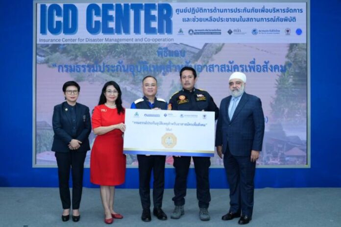 นายสุขเทพ จันทร์ศรีชวาลา อุปนายกสมาคมประกันวินาศภัยไทย พร้อมด้วยคณะผู้บริหารสมาคมฯ มอบกรมธรรม์ประกันอุบัติเหตุ ประเภทกลุ่ม คุ้มครองการเสียชีวิต สูญเสียอวัยวะ หรือทุพพลภาพถาวรสิ้นเชิง (อบ.1) และการเสียชีวิตจากการขับขี่ หรือโดยสารรถจักรยานยนต์ สำหรับอาสาสมัครเพื่อสังคม จำนวน 1,200 คน ระยะเวลาเอาประกันภัย 1 ปี ทุนประกันภัยรวม 240 ล้านบาท โดยร่วมกับ สำนักงานคณะกรรมการกำกับและส่งเสริมการประกอบธุรกิจประกันภัย (คปภ.) สมาคมประกันชีวิตไทย สมาคมนายหน้าประกันภัยไทย และสมาคมตัวแทนประกันชีวิตและที่ปรึกษาการเงิน เพื่อสร้างขวัญกำลังใจให้กับเจ้าหน้าที่มูลนิธิและอาสาสมัครเพื่อสังคมในการปฏิบัติหน้าที่และอุทิศตนเสียสละแรงกายเข้าร่วมปฏิบัติการช่วยเหลือสถานการณ์ภัยพิบัติน้ำท่วมรุนแรงในหลายพื้นที่ของประเทศไทย ประกอบด้วย มูลนิธิอาสาเพื่อนพึ่ง (ภาฯ) ยามยาก สภากาชาดไทย มูลนิธิร่วมกตัญญู มูลนิธิสยามรวมใจปู่อินทร์ มูลนิธิเส้นดาย มูลนิธิองค์กรทำดี และกลุ่มจิตอาสา ใจถึงใจ คนไทยไม่ทิ้งกัน โดยได้รับเกียรติจาก นายชูฉัตร ประมูลผล เลขาธิการสำนักงานคณะกรรมการกำกับและส่งเสริมการประกอบธุรกิจประกันภัย (เลขาธิการ คปภ.) เป็นประธานในพิธี ณ ห้องประชุมชั้น 2 สถาบันวิทยาการประกันภัยระดับสูง สำนักงาน คปภ. (รัชดาภิเษก) เมื่อวันที่ 11 ตุลาคม 2567