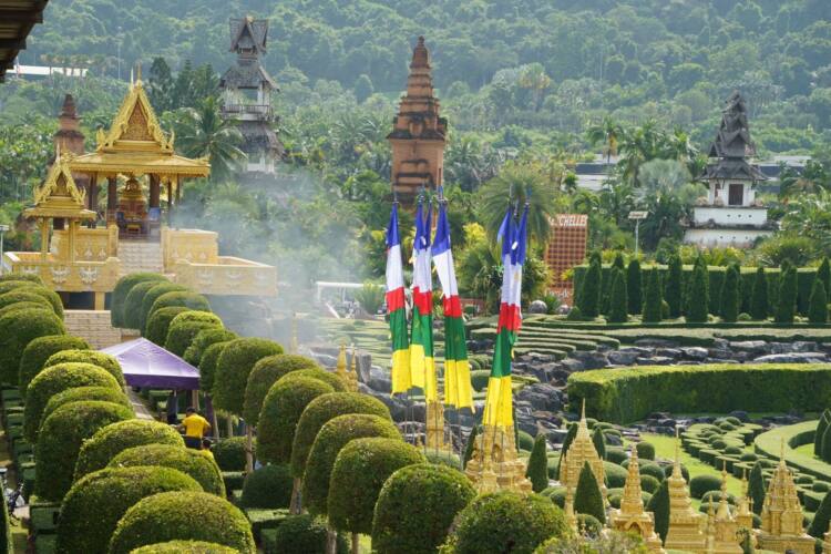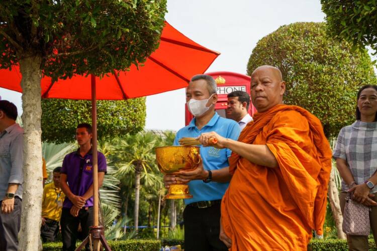 (16 ต.ค. 67) นายกัมพล ตันสัจจา ประธานสวนนงนุชพัทยา พร้อมคณะผู้บริหาร ร่วมประกอบพิธีเปลี่ยน “ธงมนตรา” จาก ประเทศภูฏาน จำนวน 9 ผืนในเวลา 9.09 น. โดยได้นิมนต์พระครูเกษมกิตติโสภณ เจ้าคณะตำบลพูลตาหลวง และพระสงฆ์รวมจำนวน 9 รูป มาประกอบพิธีปิดทองและเจิมธงมนตรา พร้อมสวดชัยมงคลคาถาในพิธี