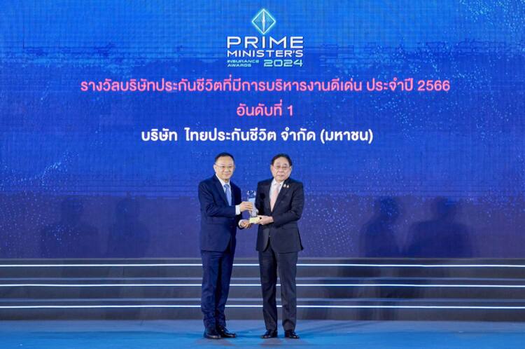 นายพิชัย ชุณหวชิร รองนายกรัฐมนตรีและรัฐมนตรีว่าการกระทรวงการคลัง มอบรางวัล “บริษัทประกันชีวิตที่มีการบริหารงานดีเด่น อันดับ 1” แก่ นายไชย ไชยวรรณ กรรมการและประธานเจ้าหน้าที่บริหาร บริษัท ไทยประกันชีวิต จำกัด (มหาชน) ในพิธีมอบรางวัลประกันภัยดีเด่นครบวงจร (Prime Minister’s Insurance Awards) ประจำปี 2567 จัดโดย สำนักงานคณะกรรมการกำกับและส่งเสริมการประกอบธุรกิจประกันภัย (คปภ.) โดยที่ผ่านมา ไทยประกันชีวิตสามารถคว้ารางวัลเกียรติยศบริษัทประกันภัยที่มีการบริหารงานดีเด่น รวม 3 ครั้ง และ รางวัลบริษัทประกันชีวิตที่มีการบริหารงานดีเด่น อันดับ 1 รวม 10 ครั้ง ณ ห้องเวิลด์บอลรูม ชั้น 23 โรงแรมเซ็นทาราแกรนด์และบางกอกคอนเวนชันเซ็นเตอร์ เซ็นทรัลเวิลด์
