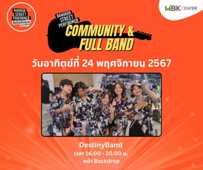 สนุกสุดมันส์กับคู่พี่น้องตี กลอง จีโอ้ & เจอาร์ (Geo & JR Drummers) ในวันเสาร์ที่ 23 พฤศจิกายน 2567 เวลา 16.00 น.-17.45 น. และ 18.00 น.-19.45 น. และฟูลแบนด์วง Destiny ในวันอาทิตย์ที่ 24 พฤศจิกายน 2567 เวลา 16.00 น.-20.00 น. พร้อมเพลิ นเพลงกับวงดนตรีอีกมากมาย โดยติดตามกิจกรรมและโปรโมชันดี ๆ ของศูนย์การค้าเอ็ม บี เค เซ็นเตอร์ ได้ที่ https://www.mbk-center.co.th/ หรือเฟซบุ๊กเพจ mbkcenterth อินสตาแกรม mbkcenter