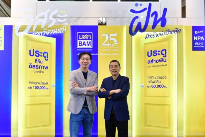 BAM โชว์ผลงานตลอดระยะเวลา 25 ปี แก้ไขหนี้เสียแล้วกว่า 160,000 ราย ก้าวสู่ปีที่ 25 เดินหน้าทรานส์ฟอร์มองค์กรครั้งใหญ่ กางโรดแมปก้าวสู่ DIGITAL ENTERPRISE เต็มรูปแบบ BAM ได้วางเป้าหมายการ Transformation 3 ส่วน คือ Transformation for People, Transformation for Growth และ Transformation for Efficiency พร้อมยกระดับองค์กรสร้างโอกาสเติบโตอย่างยั่งยืนในระยะยาว เตรียมส่ง “BAM อิสระ เดอะซีรีส์” 2 เรื่อง ชวนลูกหนี้ BAM ประนอมหนี้ – ดึงคนรุ่นใหม่ซื้อทรัพย์กับ BAM ออนแอร์ลงสื่อโซเชียลผ่านแพลตฟอร์ม Facebook, YouTube และ TikTok : BAM Thailand เริ่ม 18 พ.ย.นี้