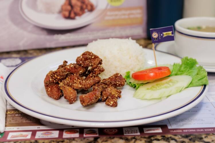 งรสลาบจัดเต็ม รสชาติแซ่บซี๊ด ถึงเครื่องตำหรับอาหารอีสาน จากนั้นจี่ในกระทะร้อนๆ หอมโชยกลิ่นข้าวคั่ว เสิร์ฟพร้อมข้าวสวยร้อนๆ และน้ำซุป ในราคา 149 บาท