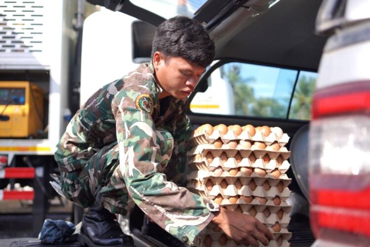 ด้านจังหวัดสงขลา นางสาวภัชรินทร์ ภู่เยี่ยม นำทีมงานจิตอาสา CPF ธุรกิจสัตว์น้ำภาคใต้ ร่วมกันส่งมอบไข่ไก่ แก่ นายนพดล สุระสังวาลย์ นายอำเภอสิงหนคร จังหวัดสงขลา เพื่อสนับสนุนโรงครัวกลางชะแล้ ต. ชะแล้ อ.สิงหนคร