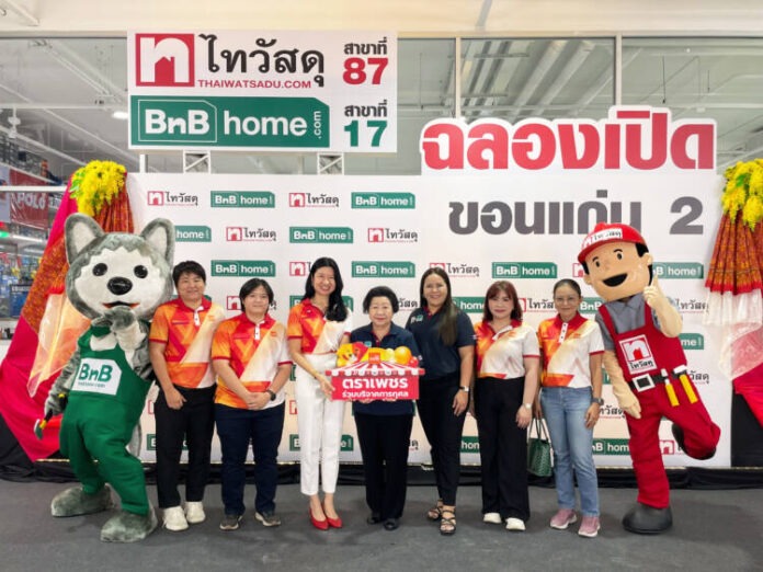 ดร.พิชญานันท์ ล้อวรลักษณ์ (ที่ 3 จากซ้าย) ผู้ช่วยประธานเจ้าหน้าที่บริหารสายการขายและการตลาด บริษัท ผลิตภัณฑ์ตราเพชร จำกัด (มหาชน) หรือ DRT ร่วมแสดงความยินดีกับ นางปาริชาติ ยามวินิจ (ที่ 4 จากซ้าย) ที่ปรึกษาประธานเจ้าหน้าที่บริหาร บริษัท ซีอาร์ซี ไทวัสดุ จำกัด ในเครือเซ็นทรัล รีเทล ผู้บริหารศูนย์รวมสินค้าและวัสดุอุปกรณ์ก่อสร้าง สินค้าตกแต่งบ้านครบวงจรภายใต้ชื่อ ‘ไทวัสดุ’ ในโอกาสเปิดให้บริการไทวัสดุ สาขาขอนแก่น 2 ถนนมิตรภาพ ซึ่งเป็นสาขาที่ 87 เพื่อขยายตลาดวัสดุก่อสร้างและตอบสนองความต้องการใช้สินค้าเพื่อการตกแต่งและซ่อมแซมในจังหวัดและพื้นที่ภาคตะวันออกเฉียงเหนือตอนกลาง