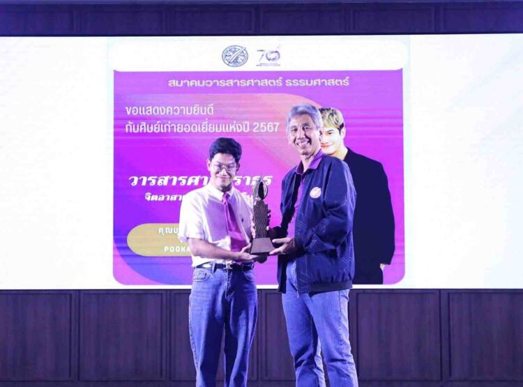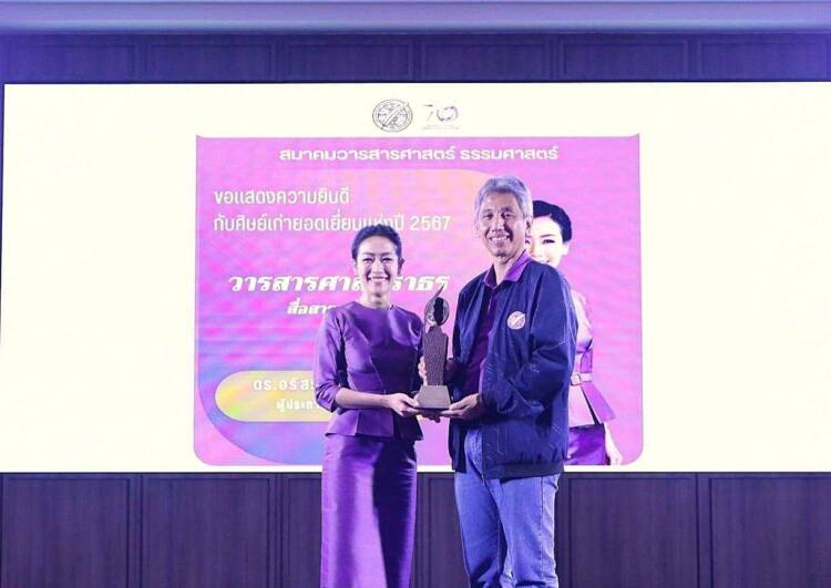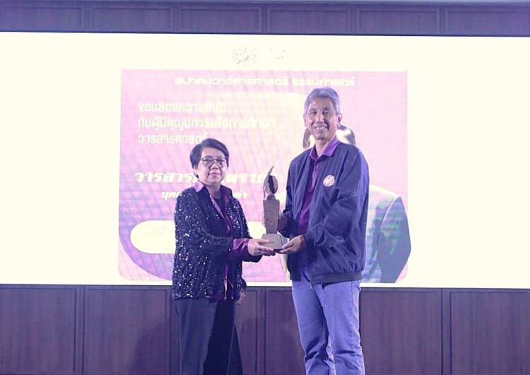 ในโอกาสนี้ สมาคมวารสารศาสตร์ฯ ได้ทำพิธีมอบรางวัลวารสารศาสตราธร ประจำปี 2567 ให้กับบุคคลผู้ทรงคุณค่าและศิษย์เก่า โดยในปีนี้ นายภูวนารถ ณ สงขลา นายกสมาคมวารสารศาสตร์ฯ เป็นผู้มอบรางวัลทั้งสิ้นรวม 5 รางวัล ประกอบด้วย