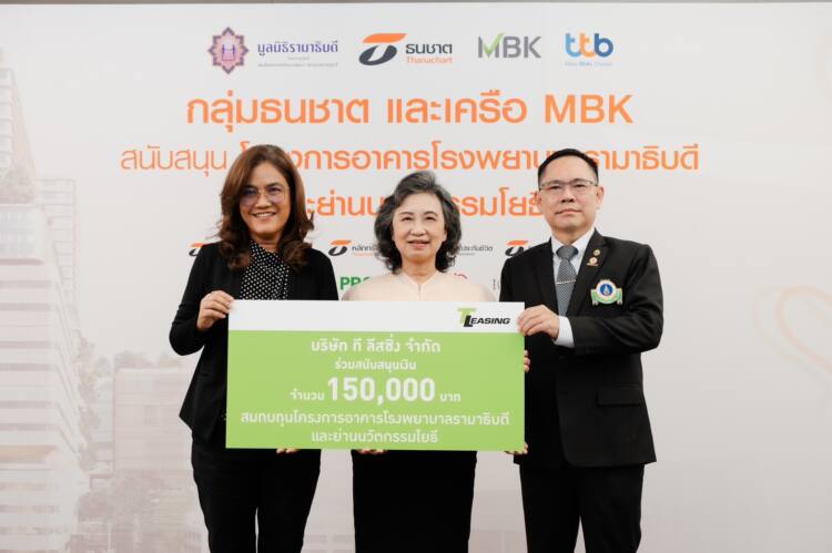 นางสาวนุชนาถ แก้วน่วม ผู้อำนวยการสำนั กกรรมการผู้จัดการและเลขานุการ บริษัท ที ลีสซิ่ง จำกัด (ที่ 1 จากซ้าย) มอบเงินสมทบทุน โครงการอาคารโรงพยาบาลรามาธิบดี และย่านนวัตกรรมโยธี จำนวน 150,000 บาท ให้กับมูลนิธิรามาธิบดี โดยมีผู้ช่วยศาสตราจารย์สุพัตรา ลีลาภิวัฒน์ ที่ปรึกษาคณะกรรมการบริหารมูลนิ ธิรามาธิบดีฯ (ที่ 2 จากซ้าย) และ รศ.นพ.ประกาศิต จิรัปปภา กรรมการบริหาร มูลนิธิรามาธิบดีฯ (ที่ 3 จากซ้าย) เป็นผู้รับมอบ ณ ธนชาตประกันภัย เดอะไนน์ทาวเวอร์ พระราม 9 เมื่อเร็ว ๆ นี้