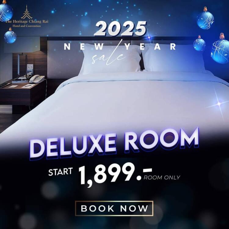โรงแรมเฮอริเทจ เชียงราย โฮเทล แอนด์ คอนเวนชั่น ขอมอบราคาห้องพักสุดพิเศษให้กับแขกผู้มีอุปการคุณเพื่อเฉลิมฉลอง “เทศกาลปีใหม่ 2025″ด้วยราคาสุดพิเศษ