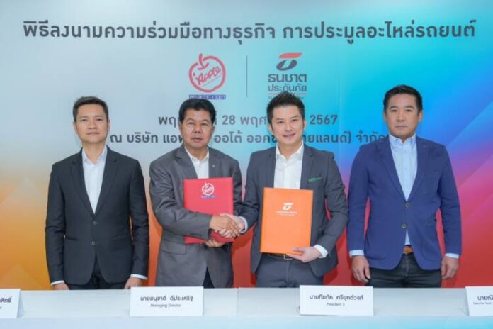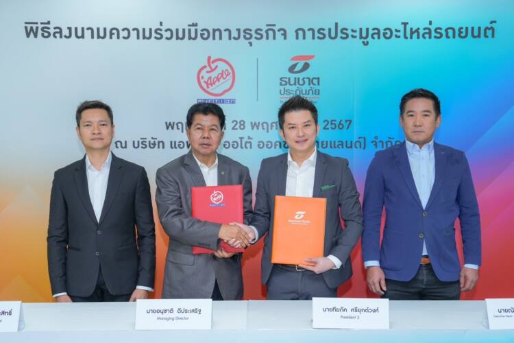 บริษัท แอพเพิล ออโต้ ออคชั่น (ไทยแลนด์) จำกัด ร่วมมือกับ บริษัท ธนชาตประกันภัย จำกัด (มหาชน) ลงนามในบันทึกความร่วมมือทางธุรกิจ การประมูลอะไหล่รถยนต์ ให้กับผู้สนใจ และกลุ่มลูกค้าของทั้ง 2 องค์กร กว่า 190 รายการ ประเดิมการประมูลครั้งแรก ในวันอังคารที่ 17 ธันวาคม 2567 เวลา 12:00 น. ณ ลานประมูล บริษัท แอพเพิล ออโต้ ออคชั่น (ไทยแลนด์) จำกัด