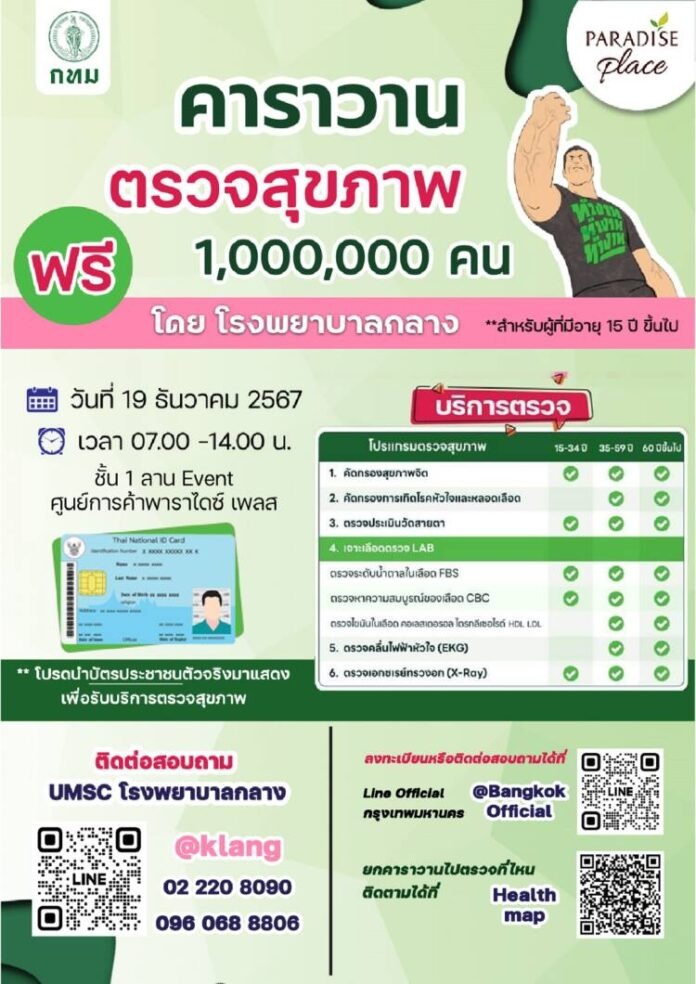 #พาราไดซ์เพลส #ParadisePlace #กรุงเทพมหานคร #โรงพยาบาลกลาง #คาราวานตรวจสุขภาพ1ล้านคน #ตรวจฟรี