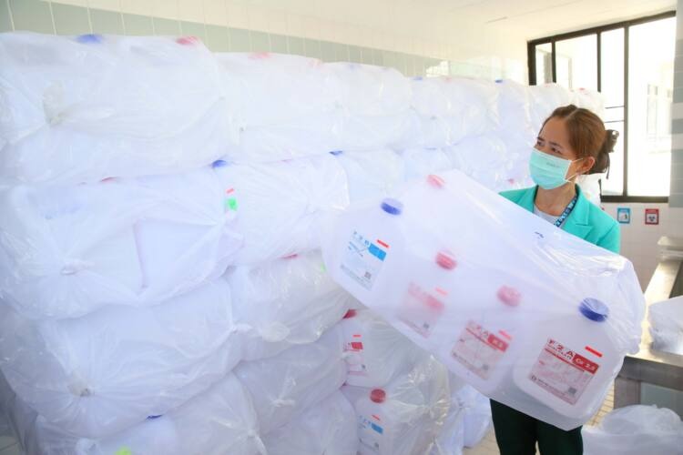 “เปลี่ยนแกลลอนน้ำยาล้างไตเป็นถุงพลาสติกรีไซเคิล” ในครั้งนี้ เนื่องจากจำนวนผู้ป่วยโรคไตที่เข้ารับการรักษาด้วยวิธีฟอกไตที่โรงพยาบาลพระรามเก้าเพิ่มขึ้นอย่างต่อเนื่อง ปริมาณการใช้น้ำยาล้างไตก็มากขึ้นด้วย ส่งผลให้แกลลอนน้ำยาไตที่อยู่ในกลุ่มขยะรีไซเคิลมีปริมาณเพิ่มขึ้นตามลำดับ ดังนั้นด้วยนโยบายด้านสิ่งแวดล้อมจึงได้ร่วมมือกับ SCGC นำแกลลอนเหล่านี้กลับมาใช้ประโยชน์ใหม่ผ่านกระบวนการรีไซเคิลเพื่อผลิตเป็นผลิตภัณฑ์รักษ์โลกสำหรับใช้ภายในโรงพยาบาล โดยโครงการนี้ได้เริ่มดำเนินการมาตั้งแต่เดือนสิงหาคมที่ผ่านมา”