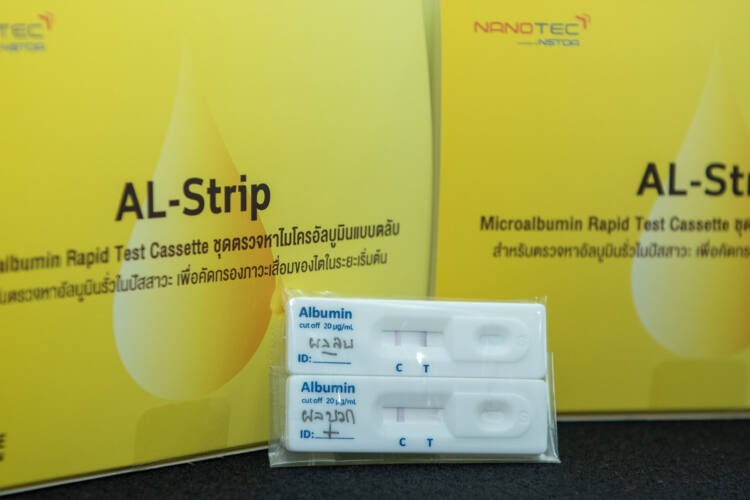 “ชุดตรวจคัดกรองโรคไตนี้ เป็นหนึ่งใน S&T implementation for Sustainable Thailand นวัตกรรมชุดตรวจแบบรวดเร็ว (Rapid Test) ที่มีดร. เดือนเพ็ญ จาปรุง เป็น Driver โดยต่อยอดงานวิจัย ‘AL-Strip’ โดย ดร. สาธิตา ตปนียากร ซึ่งเป็นชุดตรวจโรคไตเชิงคุณภาพที่ประชาชนทั่วไปใช้ตรวจคัดกรองโรคได้ด้วยตัวเอง ทราบผลตรวจได้ภายใน 5 นาที ที่สำคัญ นอกจากมีราคาจับต้องได้จากการถ่ายทอดเทคโนโลยีให้กับผู้ประกอบการแล้ว โครงการนี้ ยังช่วยให้ประชาชนสามารถตรวจคัดกรองโดยไม่มีค่าใช้จ่าย ผ่านร้านยาในโครงการ การพัฒนาระบบบริการปฐมภูมิเพื่อป้องกันและชะลอโรคไตเรื้อรังแบบครบวงจรโดยเภสัชกร เครือข่ายร้านยาในหลักประกันสุขภาพแห่งชาติ ประเทศไทย นำร่องในพื้นที่ สปสช. เขต7 ขอนแก่น” ผู้อำนวยการนาโนเทค สวทช. เผย