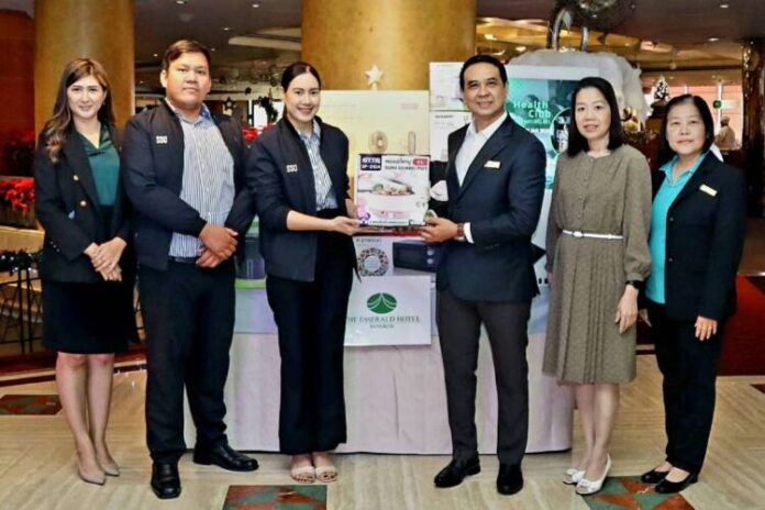 รานนท์ อาสาสนา รองผู้จัดการโรงแรม ดิ เอมเมอรัลด์ เป็นตัวแทนมอบของขวัญเพื่อร่วมสนับสนุนเป็นรางวัลต่างๆ ใน “งานกาชาด ประจำปี 2567” ผ่านร้านกระทรวงแรงงานและสมาคมแม่บ้านกระทรวงแรงงาน ภายใต้แนวคิด “ทศมราชา 72 พรรษา ถวายพระพร” เพื่อเฉลิมพระเกียรติพระบาทสมเด็จพระเจ้าอยู่หัว เนื่องในโอกาสพระราชพิธีมหามงคลเฉลิมพระชนมพรรษา 6 รอบ และเพื่อหารายได้สนับสนุนสภากาชาดไทย โดยมี ผุสชา กรมไกรยศร นักวิชาการประกันสังคม สำนักงานประกันสังคม เป็นตัวแทนรับมอบ เมื่อเร็วๆ นี้