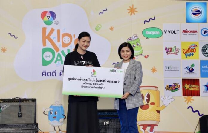 นางพิทยา อินภิรมย์ ผู้จัดการทั่วไป บริษัท เดอะไนน์ เซ็นเตอร์ จำกัด (ที่ 2 จากซ้าย) ผู้บริหารศูนย์การค้าในเครือ เอ็ม บี เค ให้การต้อนรับพร้อมมอบของรางวั
