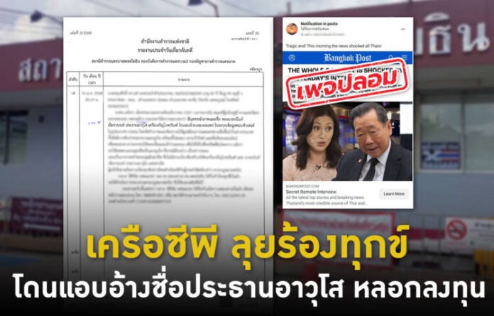 จากกรณีที่กลุ่มมิจฉาชีพได้แอบอ้างชื่อและภาพของ นายธนินท์ เจียรวนนท์ ประธานอาวุโส เครือเจริญโภคภัณฑ์ เผยแพร่ในเว็บไซต์และสื่อสังคมออนไลน์ พร้อมทั้งจัดทำภาพและข้อความหลอกลวงให้ดูเหมือนเป็นข่าวจากสื่อชั้นนำระดับโลก โดยมีเป้าหมายล่อลวงประชาชนให้ร่วมลงทุนด้วยการโฆษณาผลตอบแทนสูง