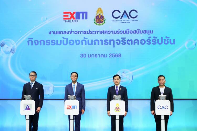 EXIM BANK จับมือสำนักงาน ป.ป.ช. และ CAC เปิดตัวนวัตกรรมทางการเงินด้านธรรมาภิบาลครั้งแรกของโลก เสริมสภาพคล่องและลดต้นทุนทางธุรกิจแก่ผู้ประกอบการไทยที่ได้มาตรฐานสากล