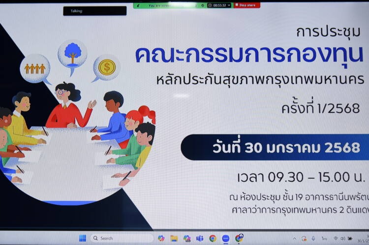 รศ.ทวิดา กมลเวชช รองผู้ว่าราชการกรุงเทพมหานคร เป็นประธานการประชุมคณะกรรมการกองทุนหลักประกันสุขภาพกรุงเทพมหานคร ครั้งที่ 1/2568 โดยมี นายสุนทร สุนทรชาติ รองปลัดกรุงเทพมหานคร และผู้เกี่ยวข้องร่วมประชุม ณ ห้องประชุม ชั้น 19 อาคารธานีนพรัตน์ ศาลาว่าการกรุงเทพมหานคร 2 ดินแดง