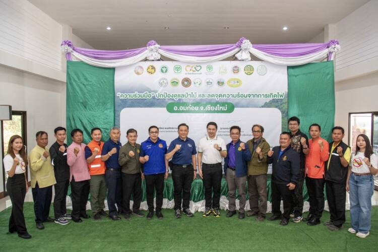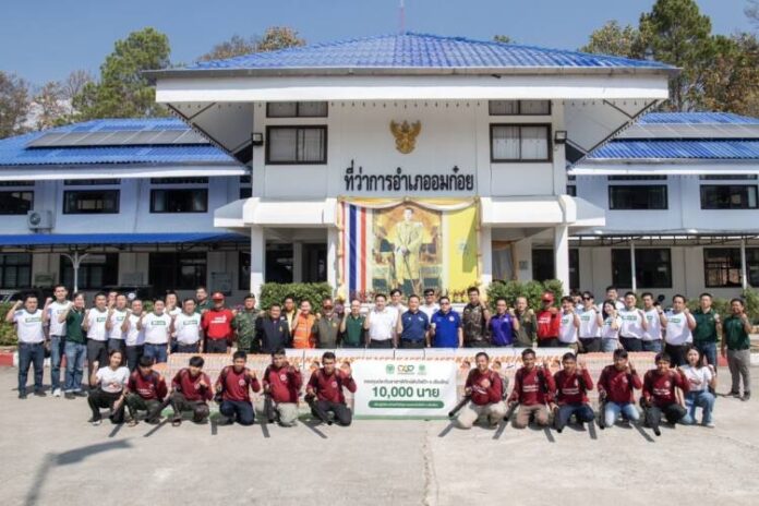 เมื่อวันที่ 19 กุมภาพันธ์ 2568 – นายนิรัตน์ พงษ์สิทธิถาวร ผู้ว่าราชการจังหวัดเชียงใหม่ เป็นประธาน รับมอบกองทุนประกันอาสาพิทักษ์ดับไฟป่า จ.เชียงใหม่ จำนวน 10,000 นาย อุปกรณ์ดับไฟป่าเครื่องเป่าลม จากเครือเจริญโภคภัณฑ์ โดยมี นายจอมกิตติ ศิริกุล รองกรรมการผู้จัดการใหญ่บริหาร ด้านพัฒนาความยั่งยืนภาครัฐและกิจการสัมพันธ์ เครือเจริญโภคภัณฑ์ เป็นผู้มอบ พร้อมด้วยหน่วยงานในพื้นที่ อาทิ ปกครองอำเภออมก๋อย สำนักงานทรัพยากรธรรมชาติและสิ่งแวดล้อมจังหวัดเชียงใหม่ สำนักจัดการทรัพยากรป่าไม้ที่ 1 (เชียงใหม่) สำนักบริหารพื้นที่อนุรักษ์ที่ 16 เชียงใหม่ สำนักงานสิ่งแวดล้อมและควบคุมมลพิษที่ 1 เกษตรจังหวัดเชียงใหม่ องค์การปกครองส่วนท้องถิ่น กรุงเทพประกันภัย สมาคมเพื่อการพัฒนาที่ยั่งยืนภาคเหนือ สถานศึกษา อาสาดับไฟป่าชุมชน เเละซีพีอาสา กว่า 300 คน เข้าร่วมงาน พร้อมกันนี้ ยังร่วมลงนามความร่วมมือปกป้องป่าไม้และลดจุดความร้อนจากการเกิดไฟป่า จ.เชียงใหม่ ร่วมกับหน่วยงานราชการในพื้นที่ 15 หน่วยงาน และเครือเจริญโภคภัณฑ์ นอกจากนี้ยังได้ร่วมกิจกรรมทำแนวกันไฟสร้างการมีส่วนร่วมทุกภาคส่วน ณ อำเภออมก๋อย จ.เชียงใหม่