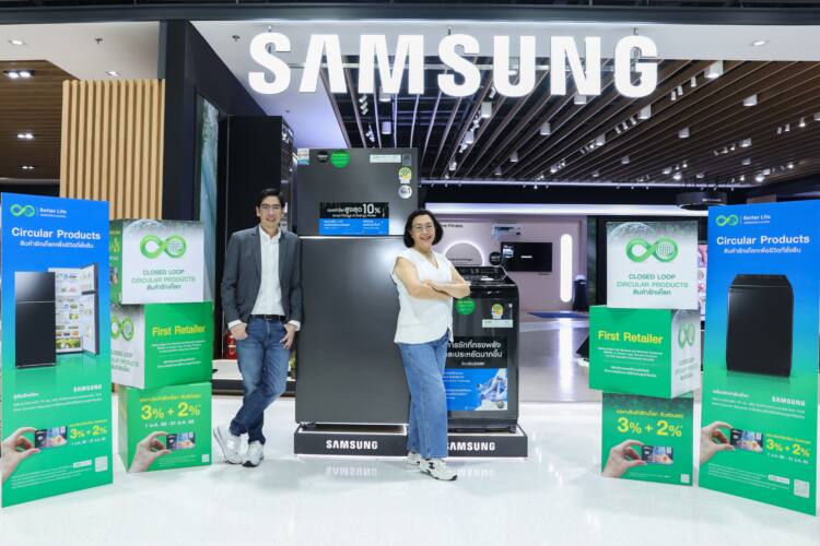ภายใต้โครงการ “HomePro Circular Products x Samsung” นำเสนอผลิตภัณฑ์เครื่องใช้ไฟฟ้าที่ตอบโจทย์ความยั่งยืนและเป็นมิตรต่อสิ่งแวดล้อม โดยผลิตภัณฑ์ไฮไลท์ในโครงการนี้ ได้แก่ ตู้เย็นรุ่น RT53 (ตู้เย็น 2 ประตูขนาดใหญ่) ผลิตจากพลาสติก PCR (Post-Consumer Recycled) จากเครื่องใช้ไฟฟ้าเก่าที่โฮมโปรได้รับมาจากโครงการ “แลกเก่าเพื่อโลกใหม่” ตามแนวคิด เศรษฐกิจหมุนเวียน (Circular Economy) โดยสินค้ามาพร้อมเทคโนโลยี AI Energy Mode ช่วยประหยัดพลังงาน และ Twin Cooling System ที่แยกการทำงานระหว่างช่องแช่เย็นและช่องแช่แข็งเพื่อรักษาความสดใหม่ของอาหาร และเครื่องซักผ้ารุ่น WA21 (เครื่องซักผ้าฝาบน) ที่มาพร้อม EcoBubble Technology ช่วยซักผ้าได้อย่างสะอาด ประหยัดพลังงาน