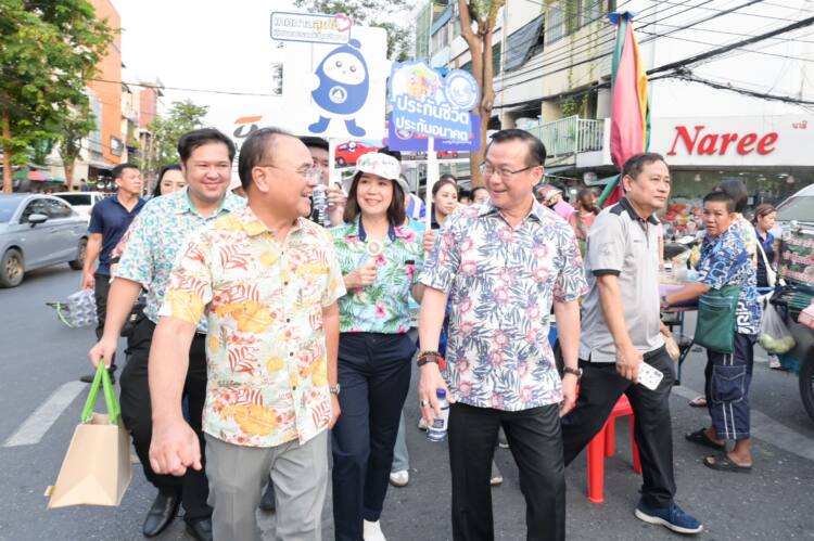 ดร.สมพร สืบถวิลกุล นายกสมาคมประกันวินาศภัยไทย ร่วมกิจกรรมรณรงค์ความปลอดภัยการเดินทางและการส่งเสริมการประกันภัยในช่วงเทศกาลสงกรานต์ ประจำปี 2568 ภายใต้แนวคิด “สงกรานต์สร้างสุข ส่งต่อความห่วงใย ส่งเสริมวัฒนธรรมประกันภัย” กับสำนักงานคณะกรรมการกำกับและส่งเสริมการประกอบธุรกิจประกันภัย (คปภ.) และภาคอุตสาหกรรมประกันภัย เพื่อสร้างความตระหนักรู้ด้านความปลอดภัยในการเดินทาง และส่งเสริมให้ประชาชนใช้ประกันภัยเป็นเครื่องมือในการบริหารความเสี่ยงให้กับตนเองและครอบครัว โดยได้รับเกียรติจาก นายชูฉัตร ประมูลผล เลขาธิการ คปภ. และนางนุสรา (อัสสกุล) บัญญัติปิยพจน์ นายกสมาคมประกันชีวิตไทย ร่วมถ่ายภาพหน้าบูธกิจกรรม เมื่อวันที่ 8 เมษายน 2568 ณ ตลาดยอดพิมาน ปากคลองตลาด กรุงเทพมหานคร