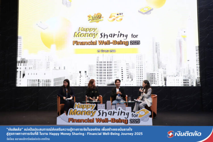 บริษัท เงินติดล้อ จำกัด (มหาชน) หรือ TIDLOR โดย คุณมิ่งขวัญ ประเสริฐศิวพร (ที่ 2 จากขวา) ผู้จัดการ งานส่งเสริมการเรียนรู้ด้านการเงิน ร่วมเป็นวิทยากรในกิจกรรม “Happy Money Sharing: Financial Well-Being Journey 2025” จัดโดย ตลาดหลักทรัพย์แห่งประเทศไทย (ตลท.) เพื่อแบ่งปันประสบการณ์ส่งเสริมความรู้ทางการเงินในองค์กร แก่ผู้แทนองค์กรพันธมิตร ทั้งภาครัฐ รัฐวิสาหกิจ และภาคเอกชน ทั้งหมด 28 องค์กร ให้สามารถไปปรับใช้เป็นแนวทางในการส่งเสริมความรู้ทางการเงินให้กับพนักงานในองค์กร สมาชิกในชุมชน หรือประชาชนทั่วไป เพื่อนำไปสู่การเปลี่ยนแปลงพฤติกรรมทางการเงิน ส่งผลให้มีสุขภาพการเงินที่ดีขึ้น และขับเคลื่อนโครงการสำเร็จได้อย่างเป็นรูปธรรม ซึ่งถือเป็นส่วนหนึ่งในภารกิจการสร้างโอกาสทางความรู้ด้านการเงินที่ยั่งยืนให้กับผู้คนในสังคมไทย นอกจากนี้ ภายในงาน ยังได้รับเกียรติจากตัวแทนของ ธนาคารกรุงไทย จำกัด (มหาชน) และ สมาคมกองทุนสำรองเลี้ยงชีพ ร่วมเป็นวิทยากรแบ่งปันประสบการณ์ครั้งนี้ด้วย พร้อมกันนี้ คุณพรรณวดี ลดาวัลย์ ณ อยุธยา ผู้ช่วยผู้จัดการ หัวหน้ากลุ่มงานพัฒนาความรู้ตลาดทุน และหัวหน้ากลุ่มงานสื่อสารองค์กร ตลาดหลักทรัพย์แห่งประเทศไทย ได้ให้เกียรติกล่าวต้อนรับ โดยกิจกรรมดังกล่าวจัดขึ้น ณ อาคารตลาดหลักทรัพย์แห่งประเทศไทย ถนนรัชดาภิเษก กรุงเทพฯ เมื่อเร็วๆ นี้
