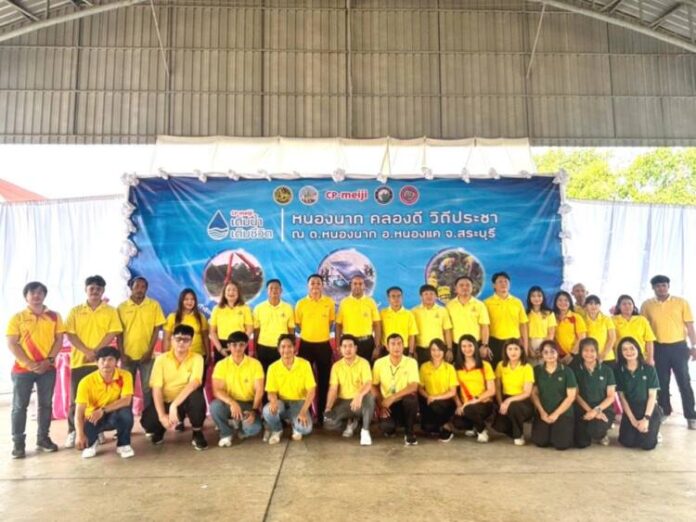 บริษัท ซีพี-เมจิ จำกัด ผนึกกำลังหน่วยราชการจังหวัดสระบุรี เดินหน้าโครงการดูแลและพัฒนาแหล่งน้ำจืด เพื่อคุณภาพชีวิตที่ดีของชุมชน จัดกิจกรรม “หนองนาก คลองดี วิถีรวมใจ” ขุดลอกคลองและกำจัดผักตบชวา ปรับภูมิทัศน์รอบคลองหนองนาก พร้อมสนับสนุนงบประมาณติดตั้งกังหันสร้างออกซิเจนให้แหล่งน้ำ จำนวน 4 เครื่อง โดยมี นายสันทัศน์ รันดาเว นายอำเภอหนองแค เป็นประธานเปิดงาน พร้อมด้วยข้าราชการ ประชาชน ตลอดจนเยาวชนในพื้นที่ และนายวิสิทธิ์ บุญเจือ ผู้อำนวยการ ซีพี-เมจิ เป็นผู้แทนบริษัทฯ นำพนักงานจิตอาสา เข้าร่วมกิจกรรม ณ พื้นที่คลองหนองนาก อ.หนองแค จ.สระบุรี