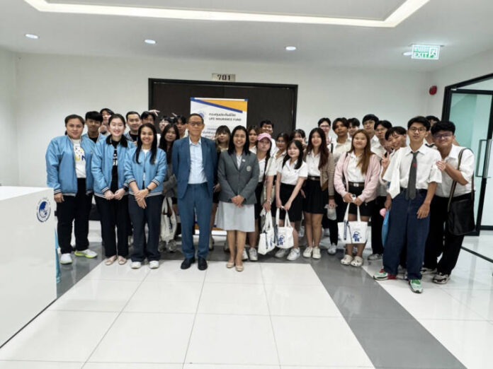 เมื่อวันที่ 18 เมษายน 2568 กองทุนประกันชีวิตได้รับเชิญจากผู้ช่วยศาสตราจารย์ ดร.ศิวลาภ สุขไพบูลย์วัฒน์ รองผู้อำนวยการ ฝ่ายบริหาร สถาบันยุทธศาสตร์ทางปัญญาและวิจัย มหาวิทยาลัยศรีนครินทรวิโรฒ (ประสานมิตร) เพื่อจัดกิจกรรมออกบูธประชาสัมพันธ์และบรรยายให้ความรู้แก่นิสิตคณะเศรษฐศาสตร์ ชั้นปีที่ 3 จำนวนกว่า 120 คน ณ สมาคมประกันชีวิตไทย โดยมีนายพิชา สิริโยธิน กรรมการบริหารกองทุนประกันชีวิต และผู้อำนวยการบริหารสมาคมประกันชีวิตไทยให้เกียรติเป็นประธานในการเปิดการบรรยายและให้ความอนุเคราะห์สถานที่ในครั้งนี้