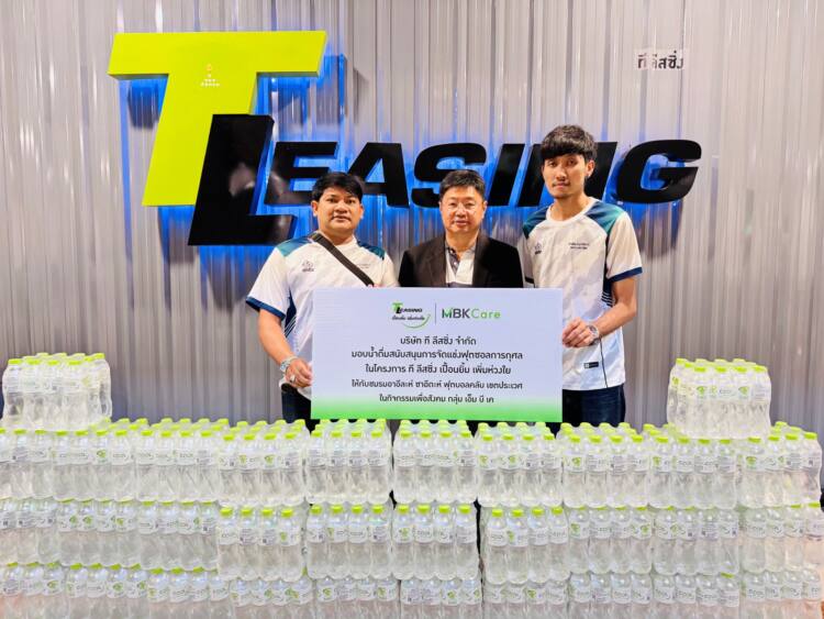 บริษัท ที ลีสซิ่ง จำกัด ผู้ให้บริการสินเชื่อเช่าซื้อรถจักรยานยนต์ ในเครือ เอ็ม บี เค เล็งเห็นความสำคัญและพร้อมผลักดันกิจกรรมการออกกำลังกายของเยาวชน ล่าสุด นายมงคล เพียรพิทักษ์กิจ กรรมการผู้จัดการ บริษัท ที ลีสซิ่ง จำกัด (ที่ 2 จากซ้าย) ร่วมมอบน้ำดื่มให้กับตัวแทน ชมรมอาอีละห์ ซาอีดะห์ ฟุตบอลคลับ เขตประเวศ เพื่อใช้ในกิจกรรมการแข่งขัน ฟุตซอลการกุศล โกลหนู ประจำปี 2568 ในโครงการ “ที ลีสซิ่ง เปื้อนยิ้ม เพิ่มห่วงใย” ที่บริษัทฯ ให้การสนับสนุนอย่างต่อเนื่อง โดยมีวัตถุประสงค์เพื่อส่งเสริมให้เยาวชนได้ใช้เวลาว่างให้เกิดประโยชน์ผ่านการเล่นกีฬา พร้อมปลูกฝังความมีวินัย การทำงานเป็นทีม และน้ำใจนักกีฬา ต่อยอดสู่ความเป็นเลิศด้านกีฬาและสายอาชีพต่อไป ณ บริษัท ที ลีสซิ่ง จำกัด ชั้น 3 ศูนย์การค้าพาราไดซ์ เพลส เมื่อเร็ว ๆ นี้